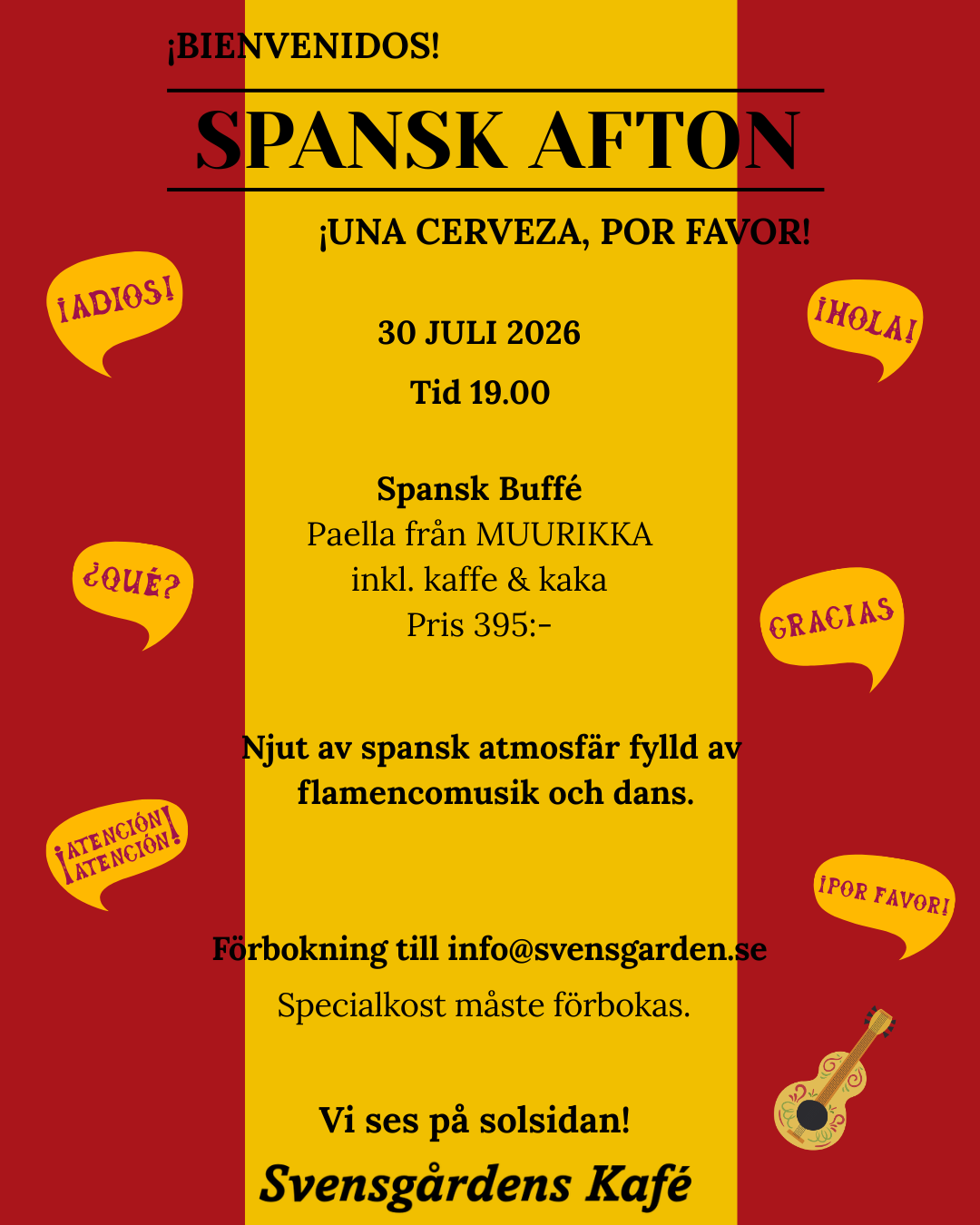 Spansk Buffé. Paella från MUURIKKA inkl. kaffe & kaka. Pris 395:-
