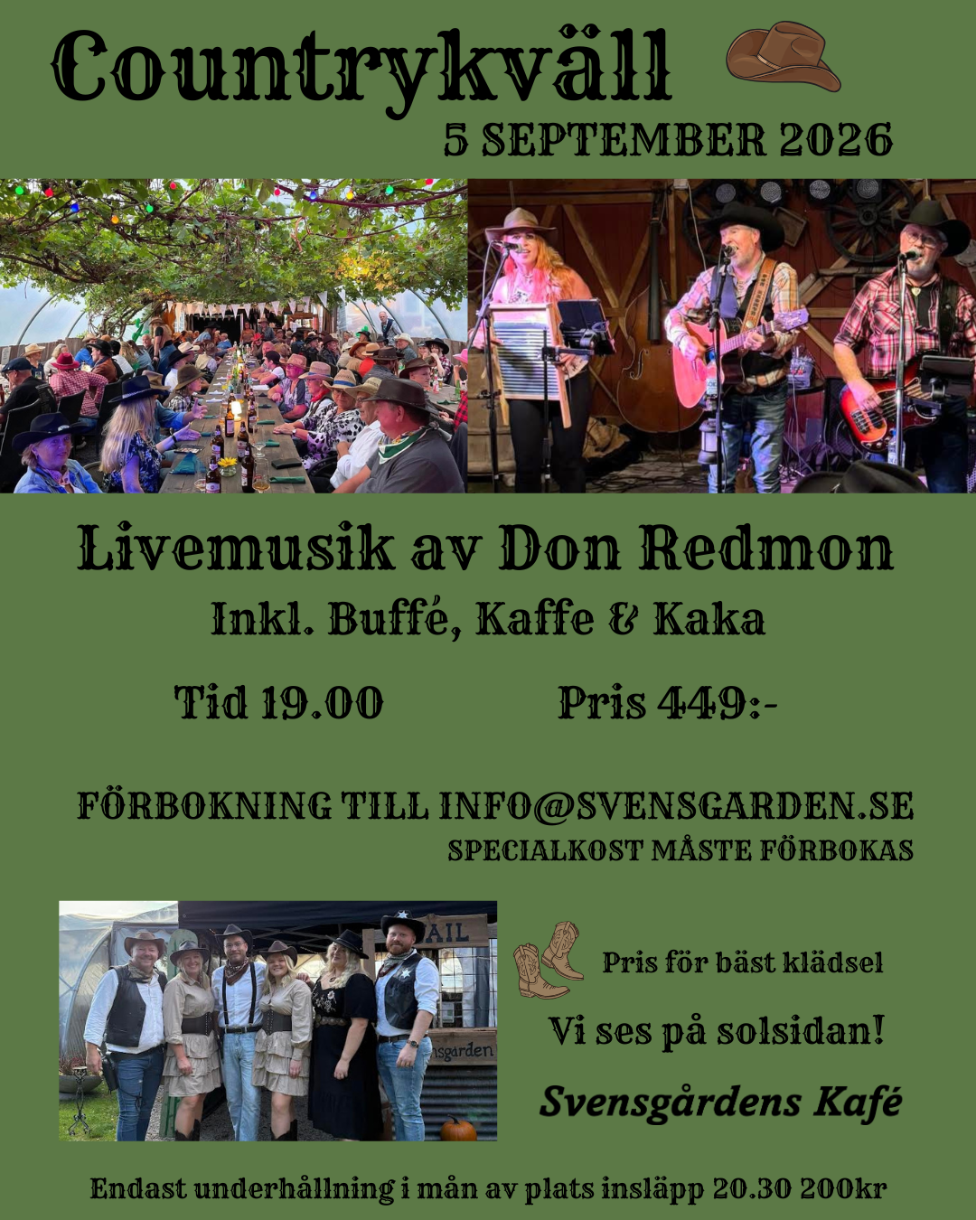 Livemusik av Don Redmon. Inkl. Buffé, kaffe & kaka. Pris 449.-